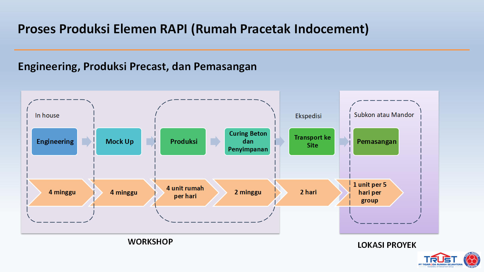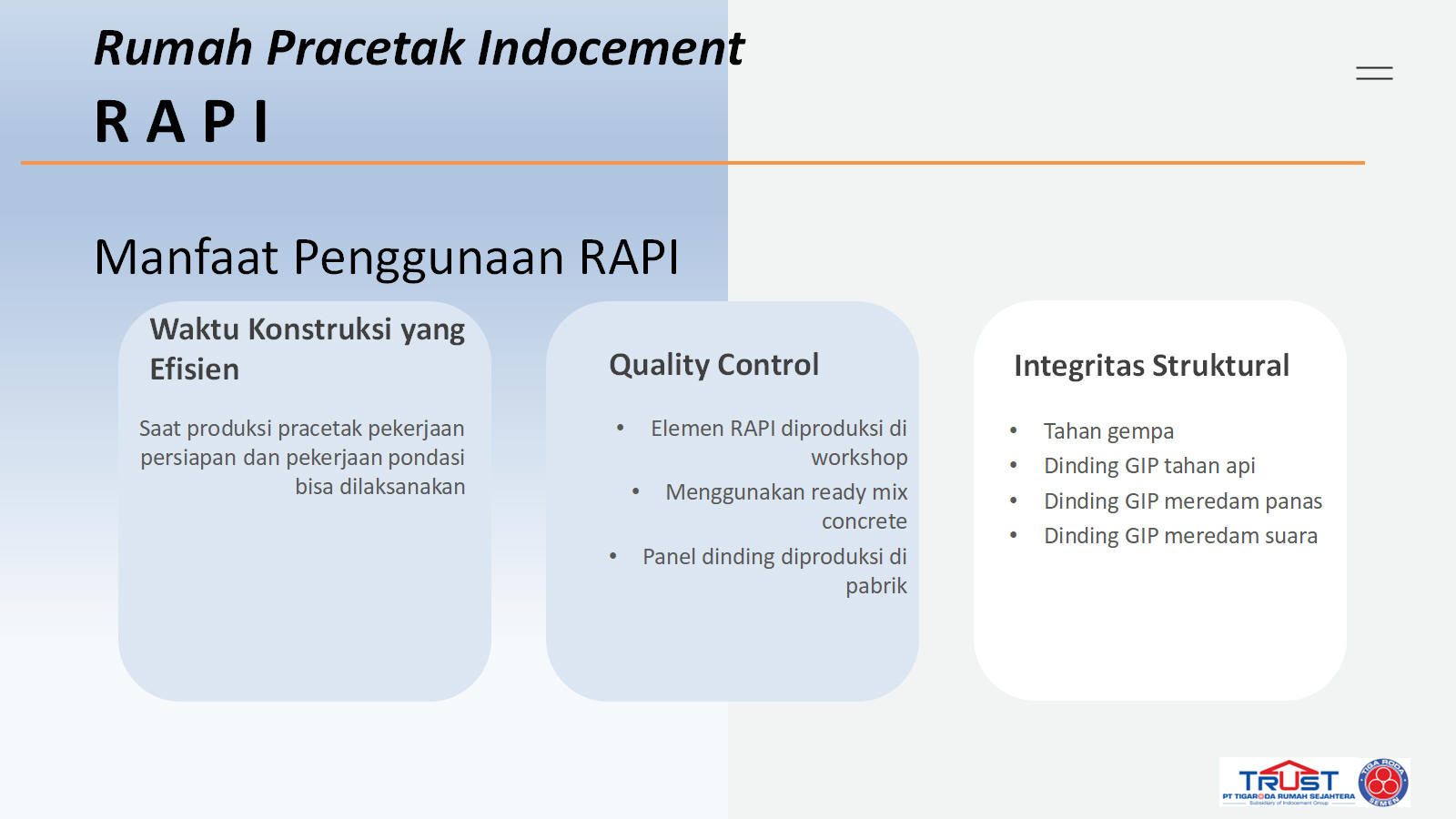 Sistem precast housing kami bernama RAPI yang merupakan kependekan dari Rumah Precast Indocement.
