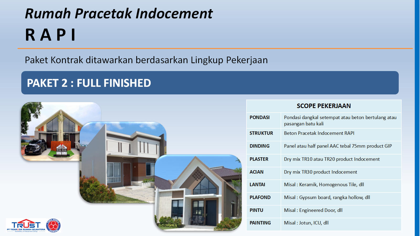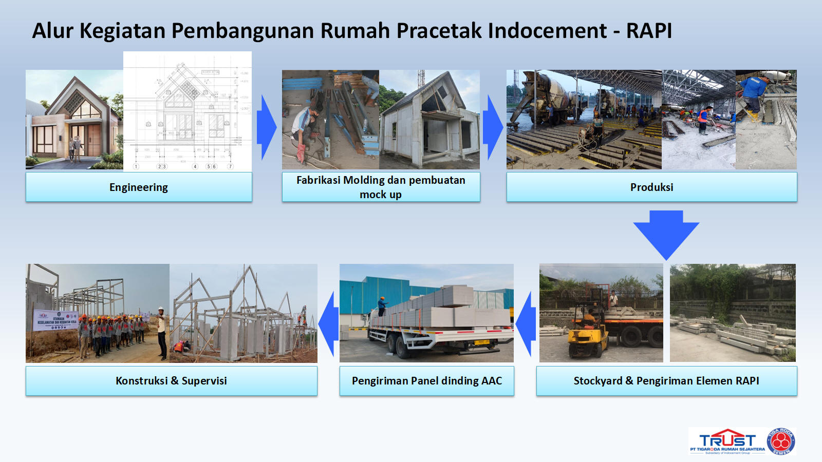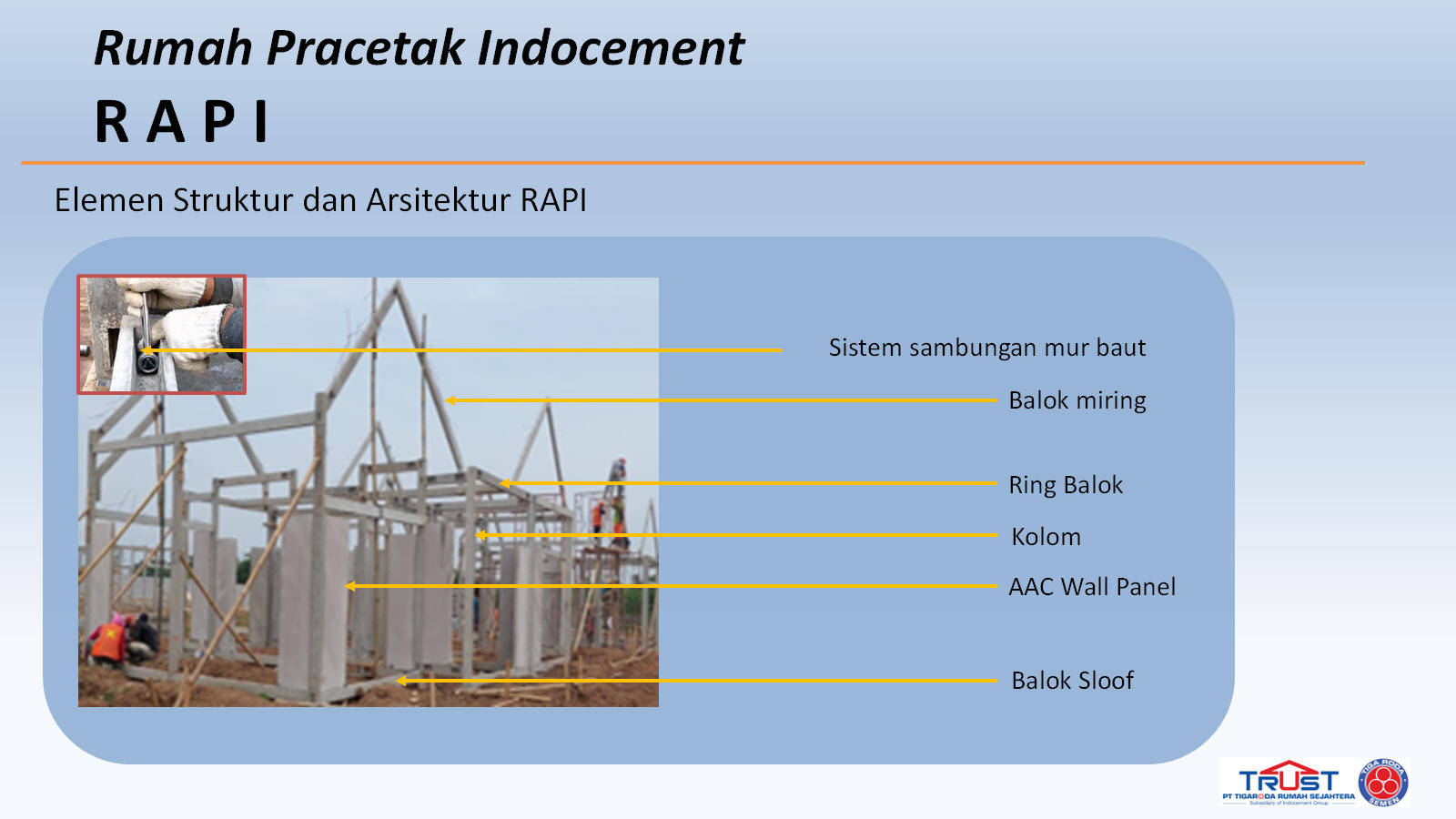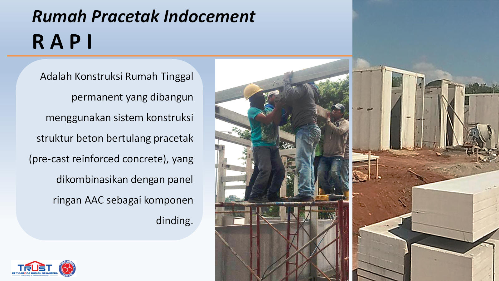 RAPI adalah Konstruksi Rumah Tinggal permanent yang dibangun menggunakan sistem konstruksi struktur beton bertulang pracetak (precast reinforced concrete), yang dikombinasikan dengan panel ringan AAC sebagai komponen dinding. Hingga saat ini kami sudah menbangun lebih dari 1000 unit rumah dengan menggunakan sistem precast RAPI. Jika anda ingin membangun proyek rumah masal yang lebih cepat, lebih presisi, lebih berkualitas, dan lebih effisien, segera hubungi kami. Team kami didukung oleh tenaga engineers dan project management yang berpengalaman puluhan tahun di bidangnya. Kami berkomitmen untuk memenuhi kebutuhan proyek perumahan masal pelanggan dengan kualitas, integritas, dan inovasi.